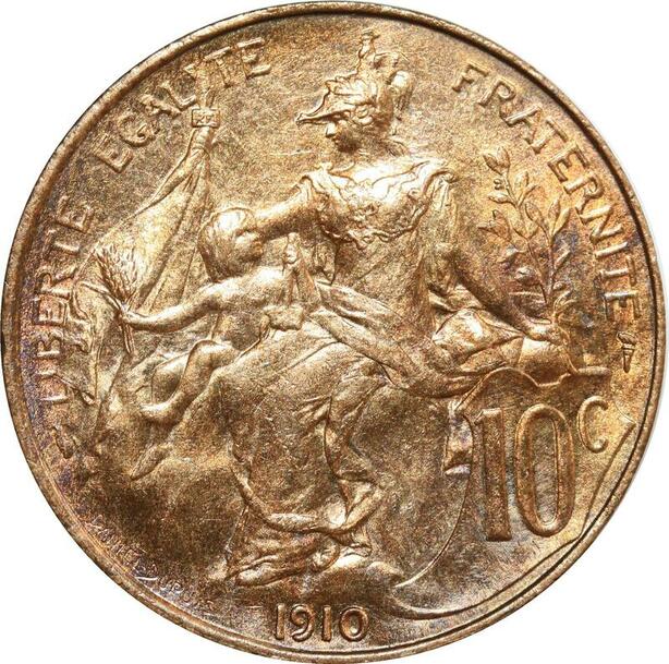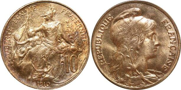 O6607 Rare 10 Centimes Dupuis 1910 FDC Red Luster ! ->Make offer