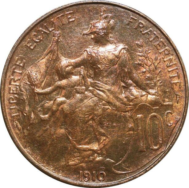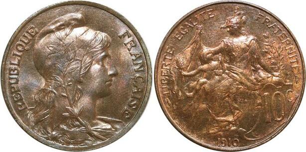 O6608 Rare 10 Centimes Dupuis 1910 FDC Red Luster ! ->Make offer
