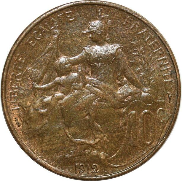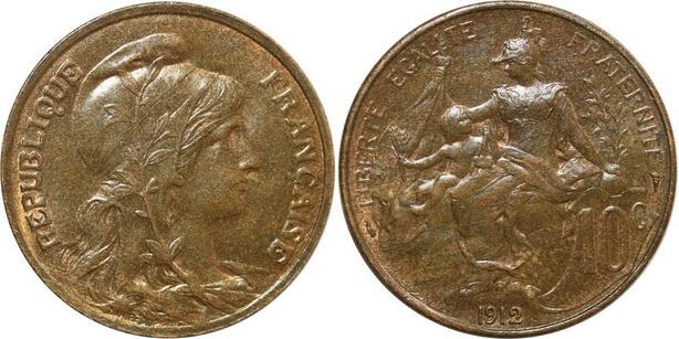 O6616 Rare 10 Centimes Dupuis 1912 SPL Red Luster ! ->Make offer
