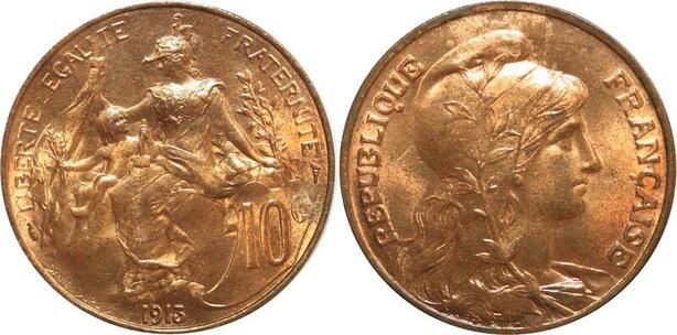 O6622 Rare 10 Centimes Dupuis 1913 FDC Red Luster ! ->Make offer
