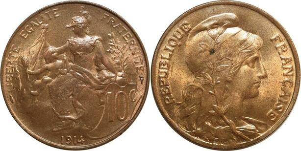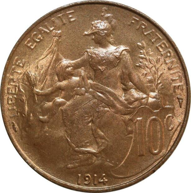 O6627 Rare 10 Centimes Dupuis 1914 FDC Red Luster ! ->Make offer