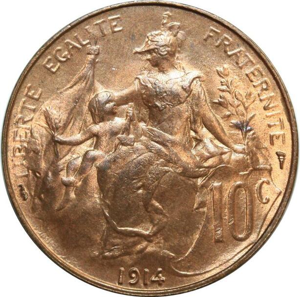 O6628 Rare 10 Centimes Dupuis 1914 FDC Red Luster ! ->Make offer