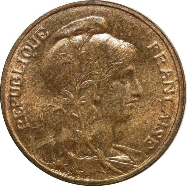 O6631 Rare 5 Centimes Dupuis 1908 SPL Red Luster ! ->Make offer