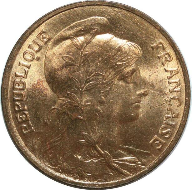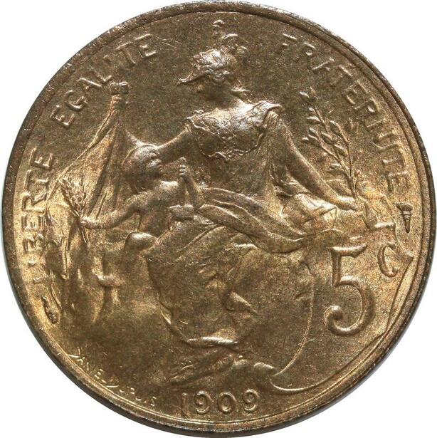 O6633 Rare 5 Centimes Dupuis 1909 SPL Red Luster ! ->Make offer
