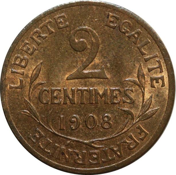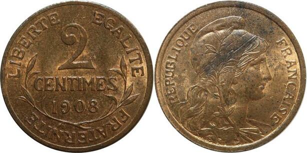 O6648 Rare 2 Centimes Dupuis 1908 SPL Red Luster ! ->Make offer