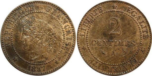 O6653 2 Centimes Cérès 1897 A Paris Superbe +++