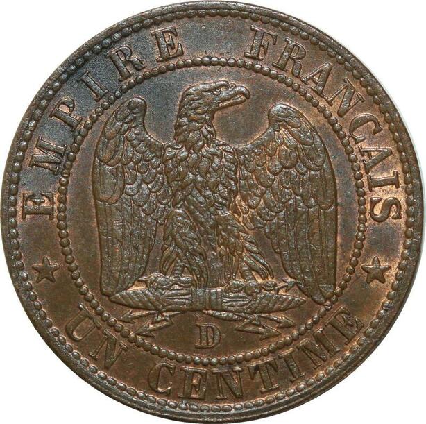 O6686 Rare 1 Centime Napoléon III Nue 1855 D Ancre SPL Red Luster