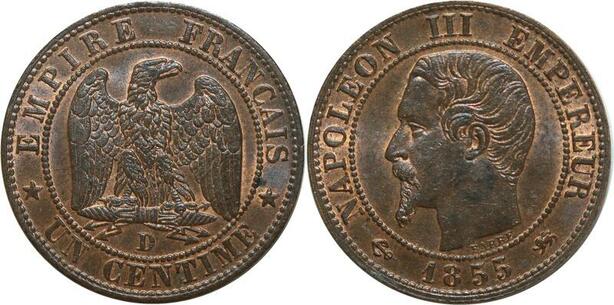 O6687 Rare 1 Centime Napoléon III Nue 1855 D Ancre FDC Red Luster