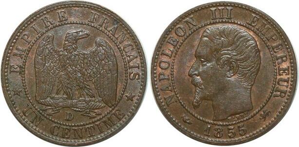 O6693 Rare 1 Centime Napoléon III Nue 1855 D Ancre SPL Red Luster