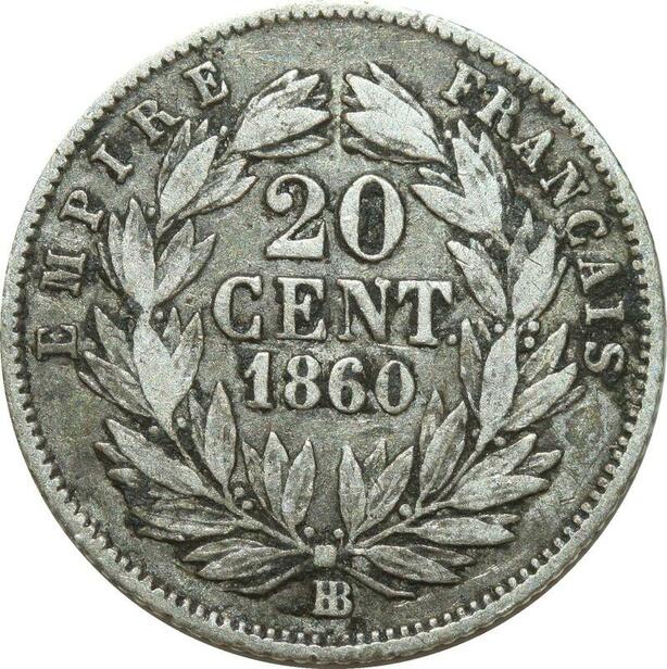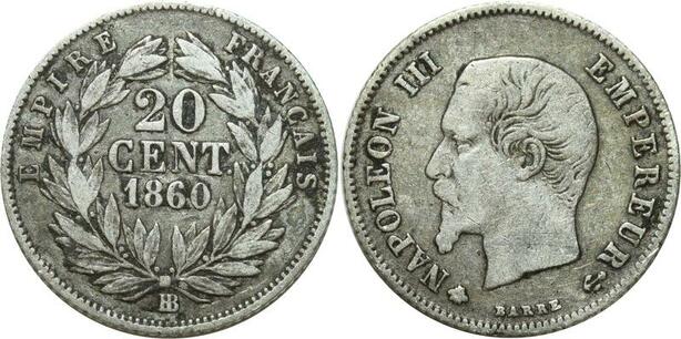O6722 20 Centimes Napoléon III 1860 BB Strasbourg Argent Silver