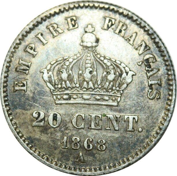 O6724 20 Centimes Napoléon III 1868 A Paris Argent Silver Quasi SUP !!