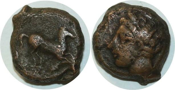O6788 Zeugitania Carthage Unité Bronze 400-350 BC Tanit horse ->Make offer