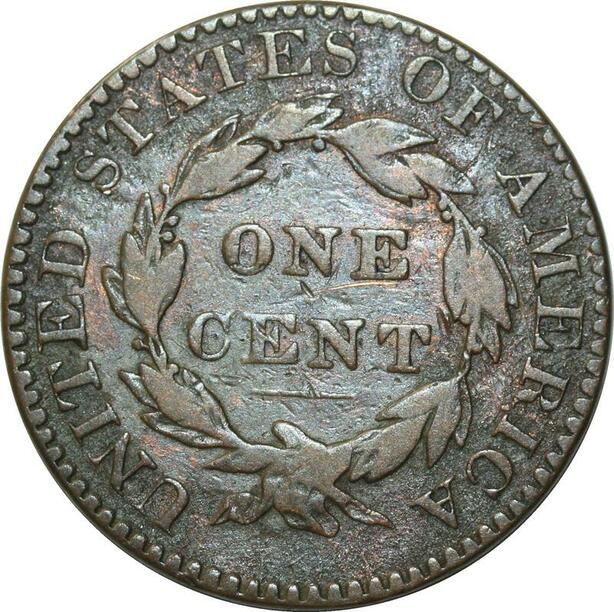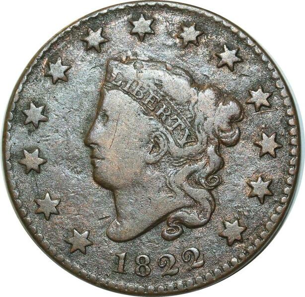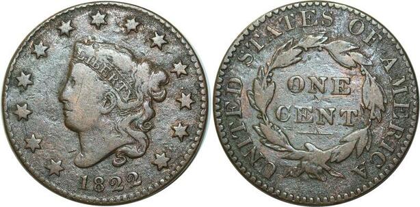 O6796 USA 1 Cent Coronet Head Cents 1822 VF