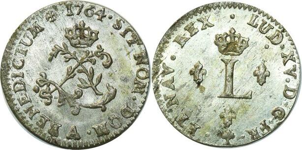 O6800 Finest Scarce USA French Colonies 2 Sous Louis XV 1764 A UNC PCGS MS64
