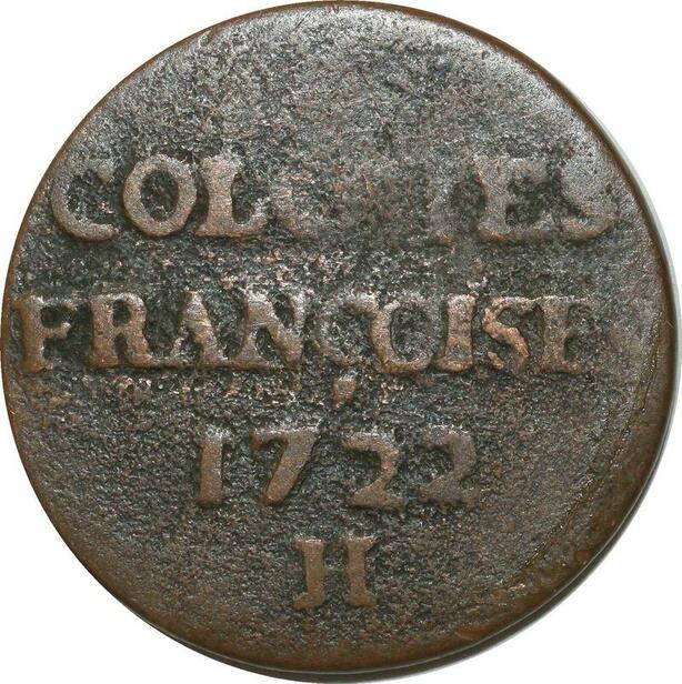 O6802 USA Colonies Louis XV 3 Sols 9 Deniers 1722 H La Rochelle VF