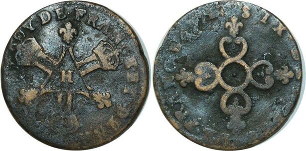 O6809 France 6 Deniers des Dardennes Louis XIV H La Rochelle 1638-1715 ->M offre