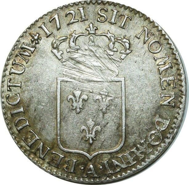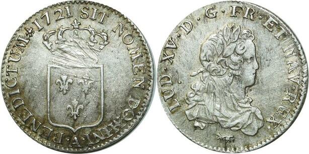 O6819 Rare France 1/3 Ecu France Louis XV 1721 A Paris FN Argent TTB+ /SUP