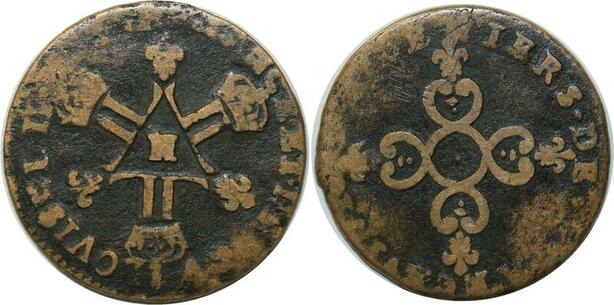 O6821 France 6 Deniers des Dardennes Louis XIV 1710 N Montpellier ->M offre