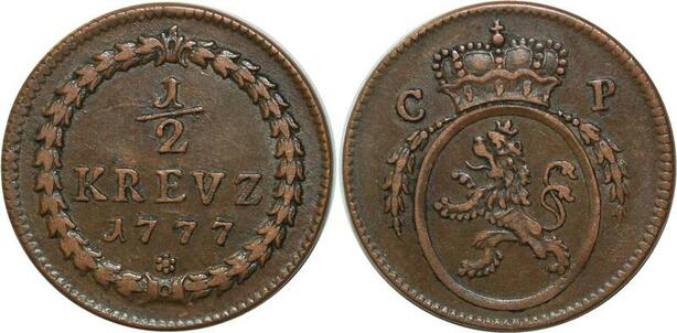 O6842 German States Pfalz-Electoral Pfalz 1/2 Kreuzer Mannheim 1777 AU