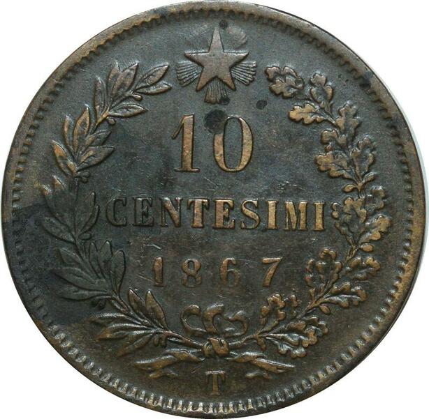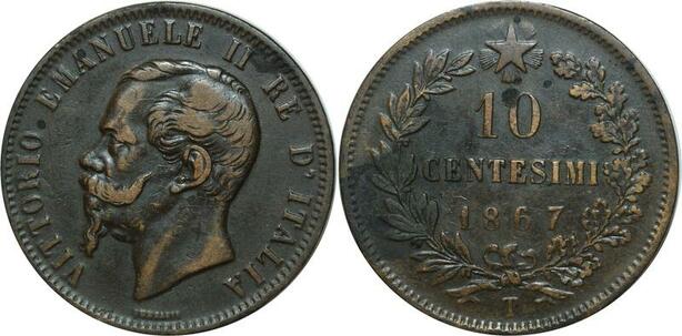O6892 Italy Italyn 10 Centesimi 1867 Vittorio Emmanuele II T Turino Turin