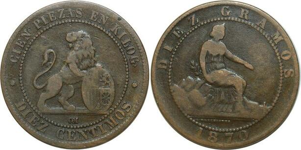 O6895 Spain Spain 2 Centimos 1870 OM ->Make offer