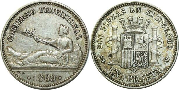 O6896 Spain Spain Un Peseta 1869 SN M Madrid Silver XF -->Make offer