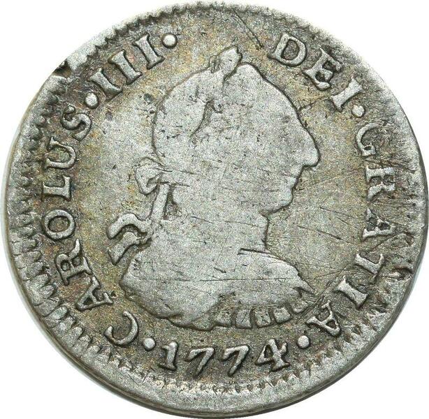 O6897 Mexico 1/2 Real Carlos III 1774 MO FM Mexiko City Silver ->Make offer