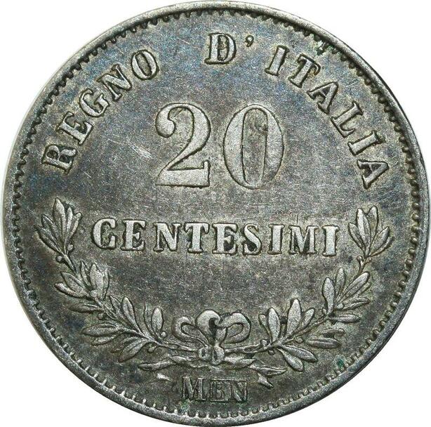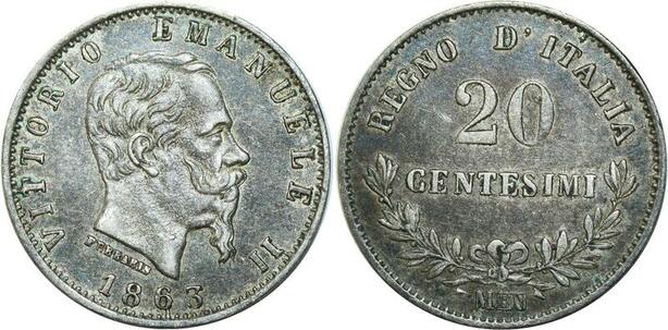 O6901 Italy 20 Centesimi Vittorio Emanuele II 1863 Milan BN Silver ->Make offer