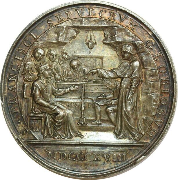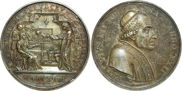 O6927 Scarce Vatican Medaglia Pie VII Body Saint Francis 1821 Silver UNC
