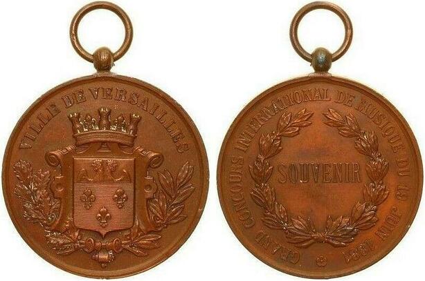 O6931 Médaille Ville Versailles Concours Inter. Musique 1881 SUP