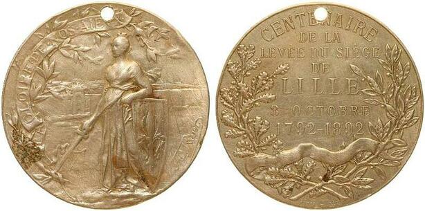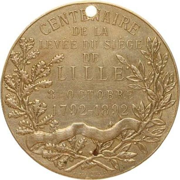 O6938 Médaille Centenaire levée Siège Lille 8 Oct 1792 1892 Maillechort