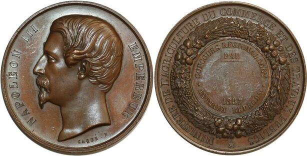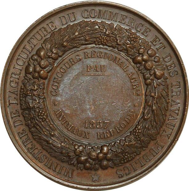 O6952 Médaille Napoléon III Concours Animaux Pau 1857 Caqué -> Make offer
