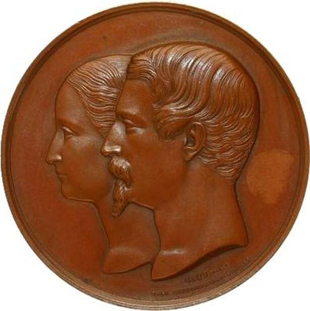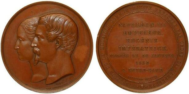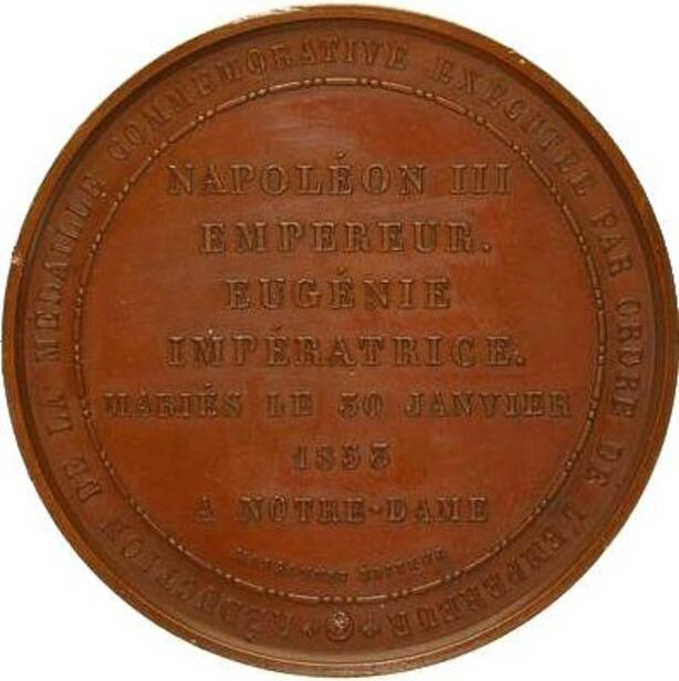 O6979 France Médaille Napoléon III Mariage Eugénie Montijo Notre-Dame 1853 Caqué
