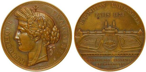 O6985 France Medaille Medal Exposition Universelle Palais Trocadero Paris 1878 Oudine