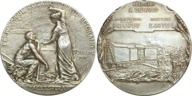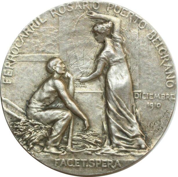 O6988 Rarissime Medal Argentina Ferrocarril Rosario Puerto Belgrano R Gregoire
