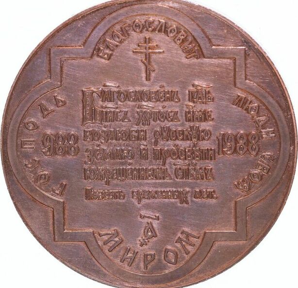 O7026 Russia Russian Medal Millenaire Christianisation Baptème Saint Vladimir