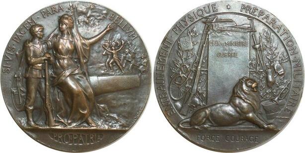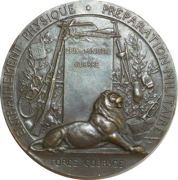 O7032 France Medaille Entrain Physique Prep Militaire Force Courage Lion Prudhomme Mis