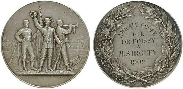 O7036 France Médaille Amicale Ecole Poissy Sirguey 1909 Militaire Preparation guerre