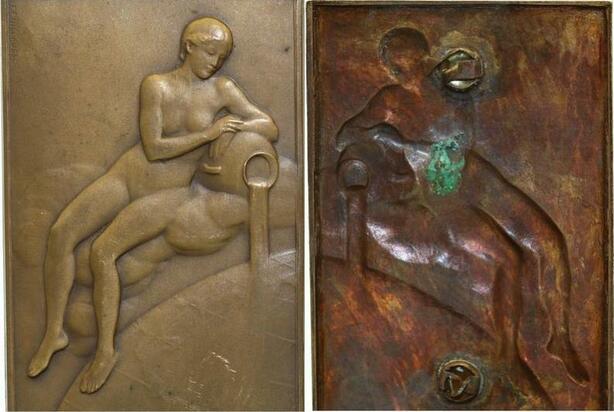 O7040 France Rare Plaque incuse Grande Source Vittel Art 1909 Niclausse SUP !!
