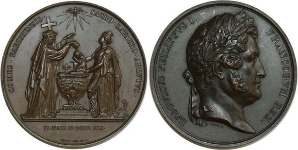 O7055 Rare Médaille Philippe d'Orléans Baptème Comte Paris Petit 1841 ->M offre