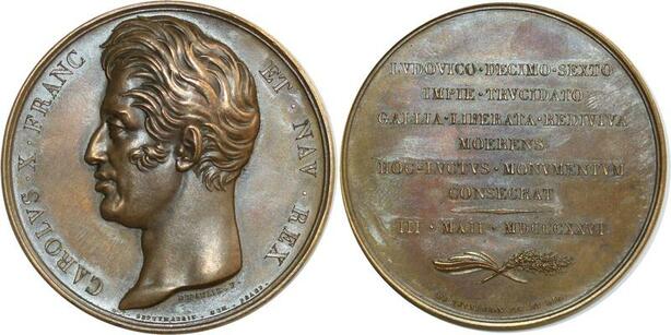 O7059 Rare Médaille Charles X Momument Mémoire Louis XVIII 1826 depaulis