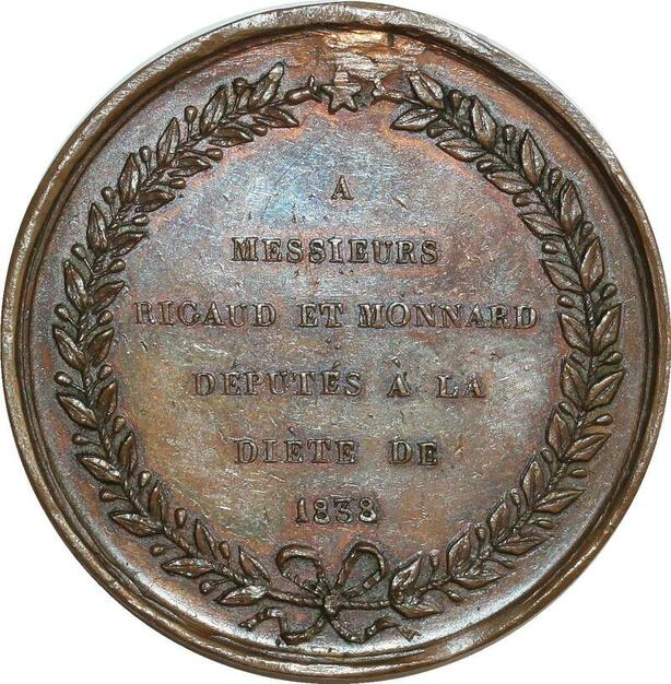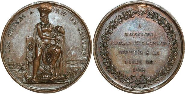 O7065 Unique Medal Switzerland Swiss Ricaud Deputy in Rio de Janeiro 1838 Brazil
