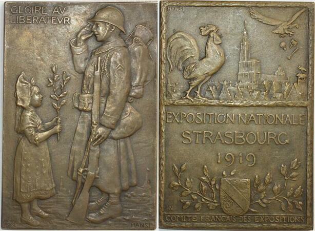 O7115 Rare France Médaille Exposition Nationale Strasbourg Comité Francais Hansi 1919