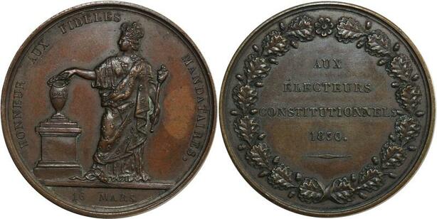 O7145 Médaille Aux Fidèles Mandataires Electeurs Constitutionnels 1830