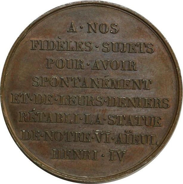 O7147 Médaille Statue Henri IV Aieul Louis XVIII Gayrard -> Make offer
