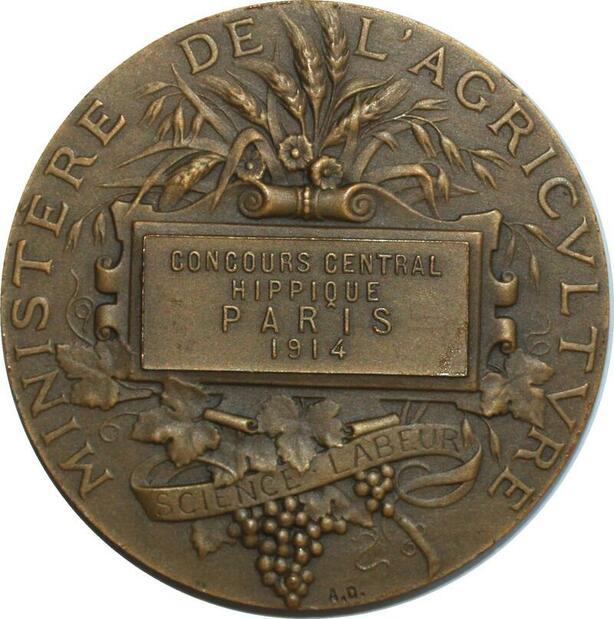 O7172 France Médaille Ministère Agriculture Concours Hippique Paris dubois 1914