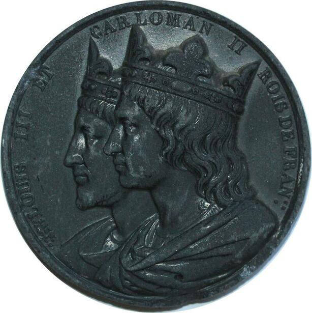 O7199 Médaille Uniface Louis III et Carloman II Roi de France Caqué 1836 1839