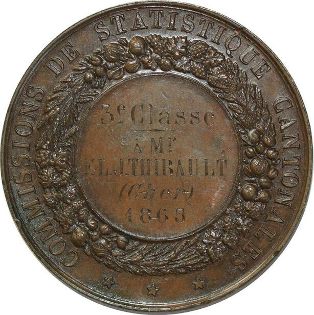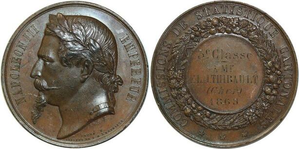 O7274 Médaille Napoléon III Comissions Statistiques Cantonales 1865 SUP