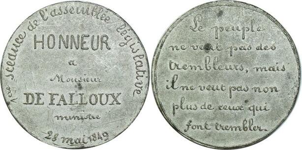 O7276 Rare Médaille ministre AlfRed de Falloux Assemblée législative 1849 SPL