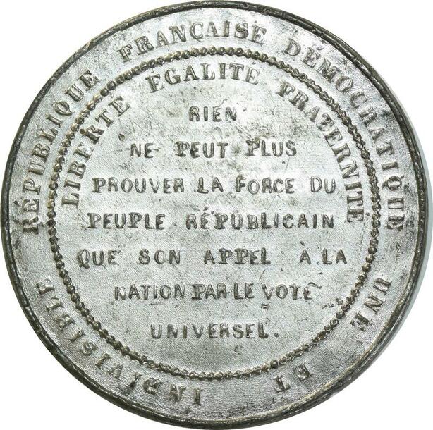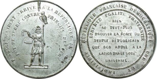 O7277 Rare Médaille République 1848 Pot de Terre Principe de Fer SUP